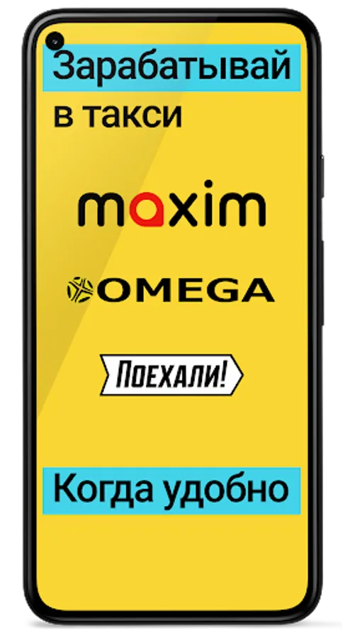 We connect online in a taxi Maxim (maxim), Omega (Omega), Let's go (Poehail), There (Tuda), Taxsee Driver (taxi driver or maxim driver), Mix, taxi Pickup (Pickup)