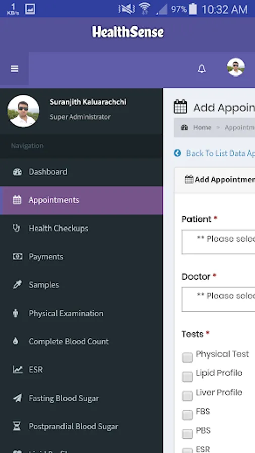 HealthSense application lets you schedule appointments with multiple healthcare institutes for various healthcare tests. You can also access your health reports when they are ready.