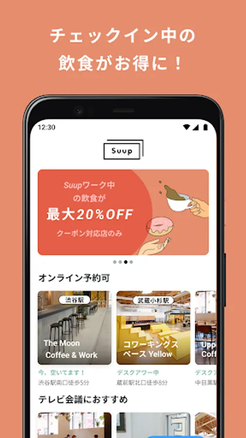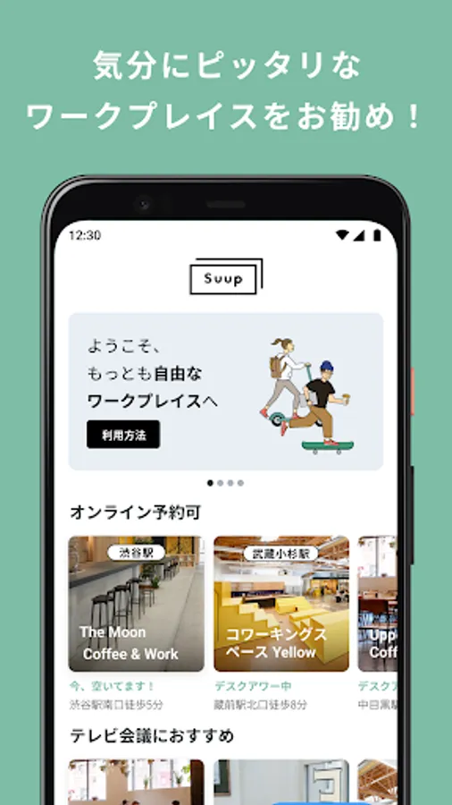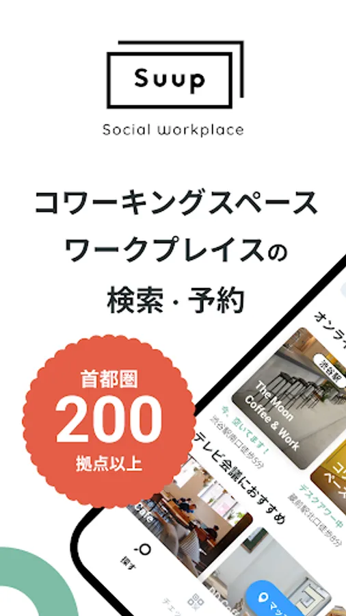 Suup is a service that allows you to search and use coworking spaces near your home as a workplace on an hourly basis.