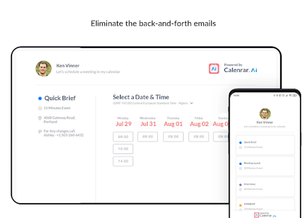 - Create your own scheduling page and allow leads and customers to book meetings with you without the back-and-forth messages. Simply set your working hours, and Calendar.AI will allow booking meetings only in your available time slots.