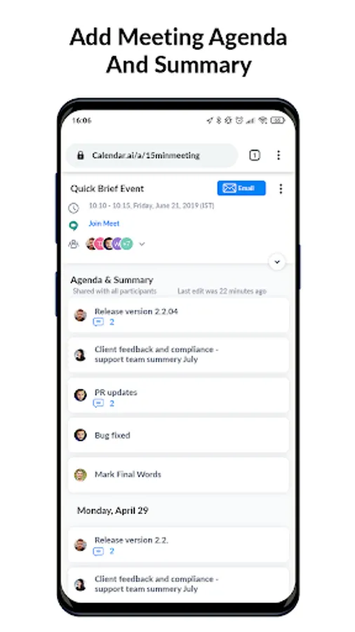 - Quickly add meeting minutes and action items to your calendar events.
