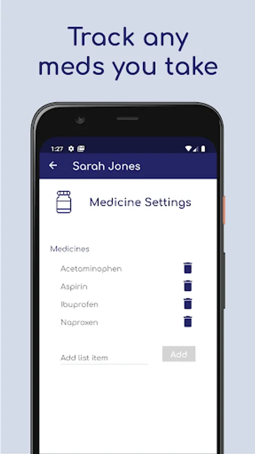 * Add yourself and any loved ones you want. Track for your whole family, your roommate - anyone. You can even give others access to log for individuals on your account.