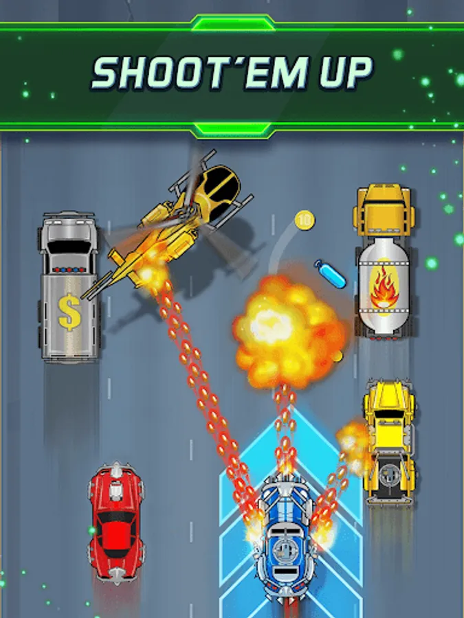 This addictive, action-packed shooter will put your driving skills to the ultimate test! Dodge missiles, destroy enemy cars, and leave a trail of destruction as you race to the top of the worldwide rankings!