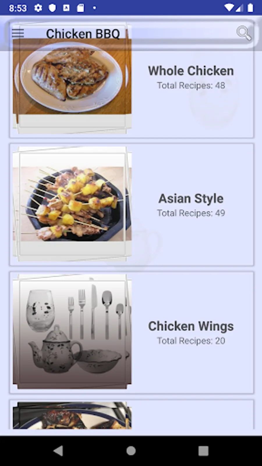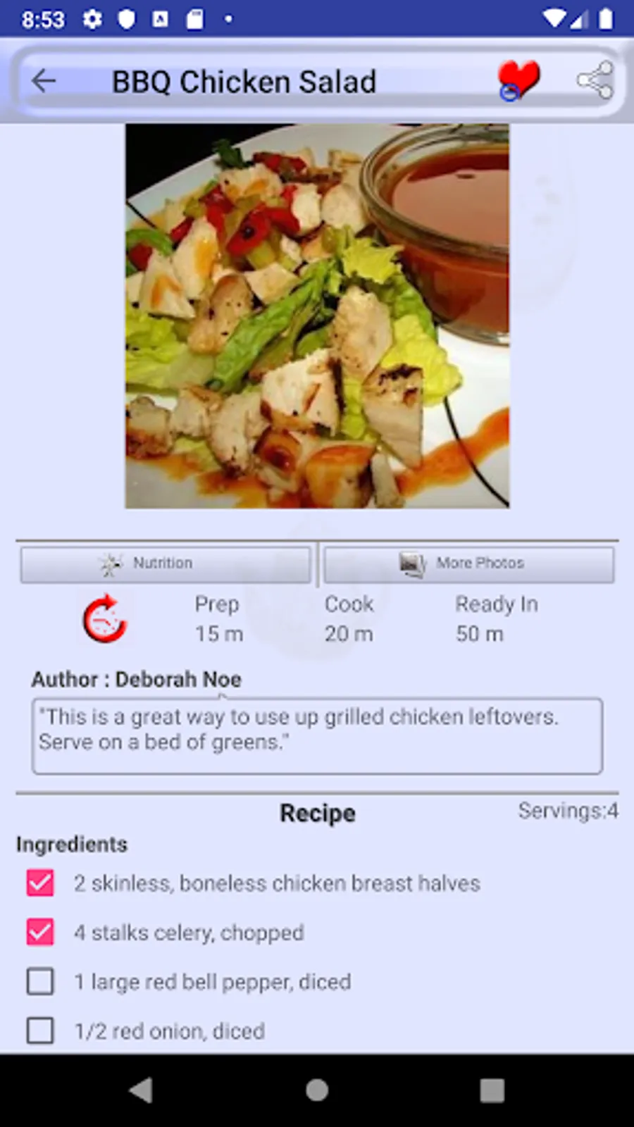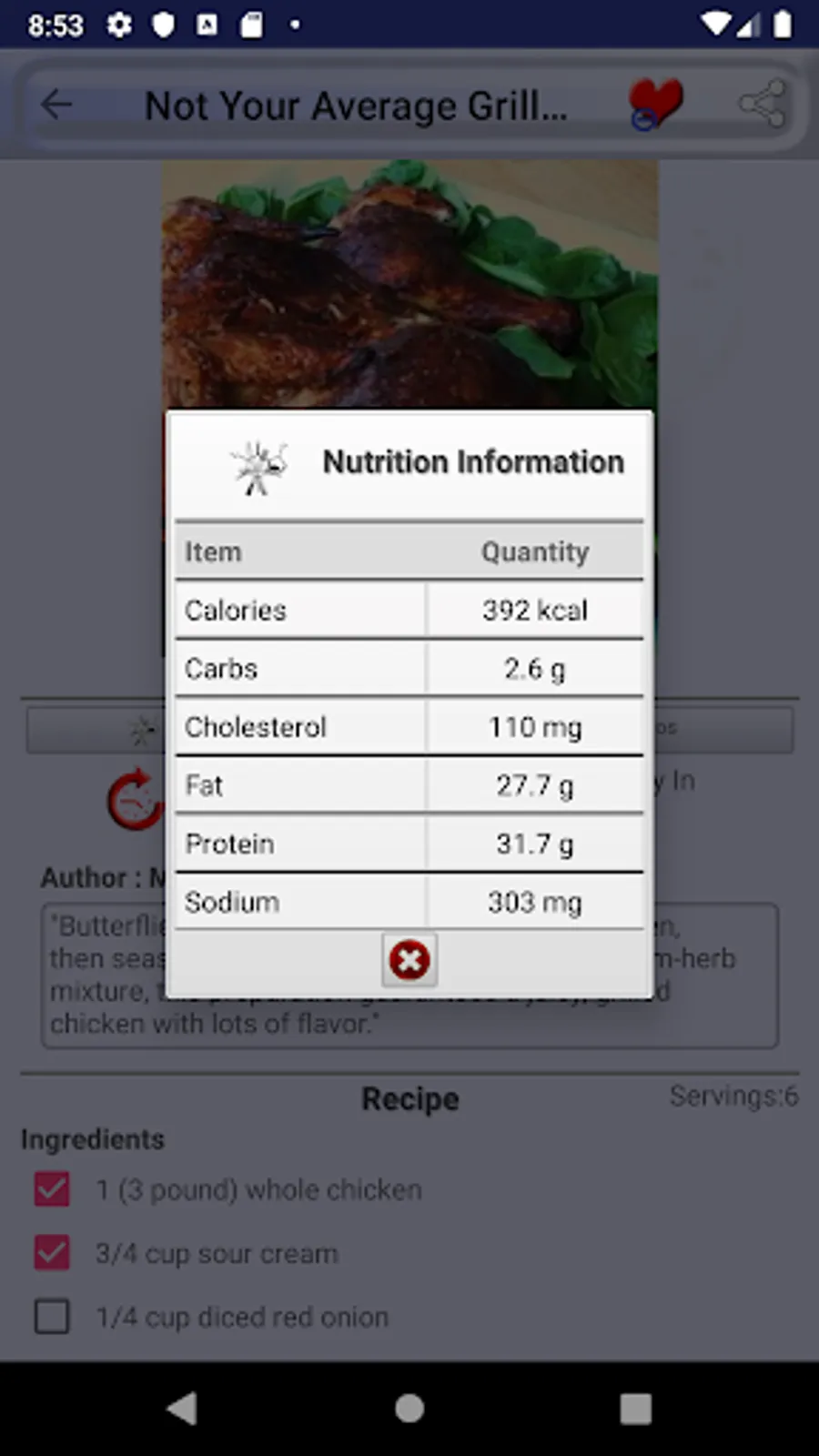 Mark a recipe as favorite recipe and you will not need to search it again in thousands of recipes we provide in Chicken BBQ. All favorite recipes have a dedicated favorite recipes section in menu drawer.