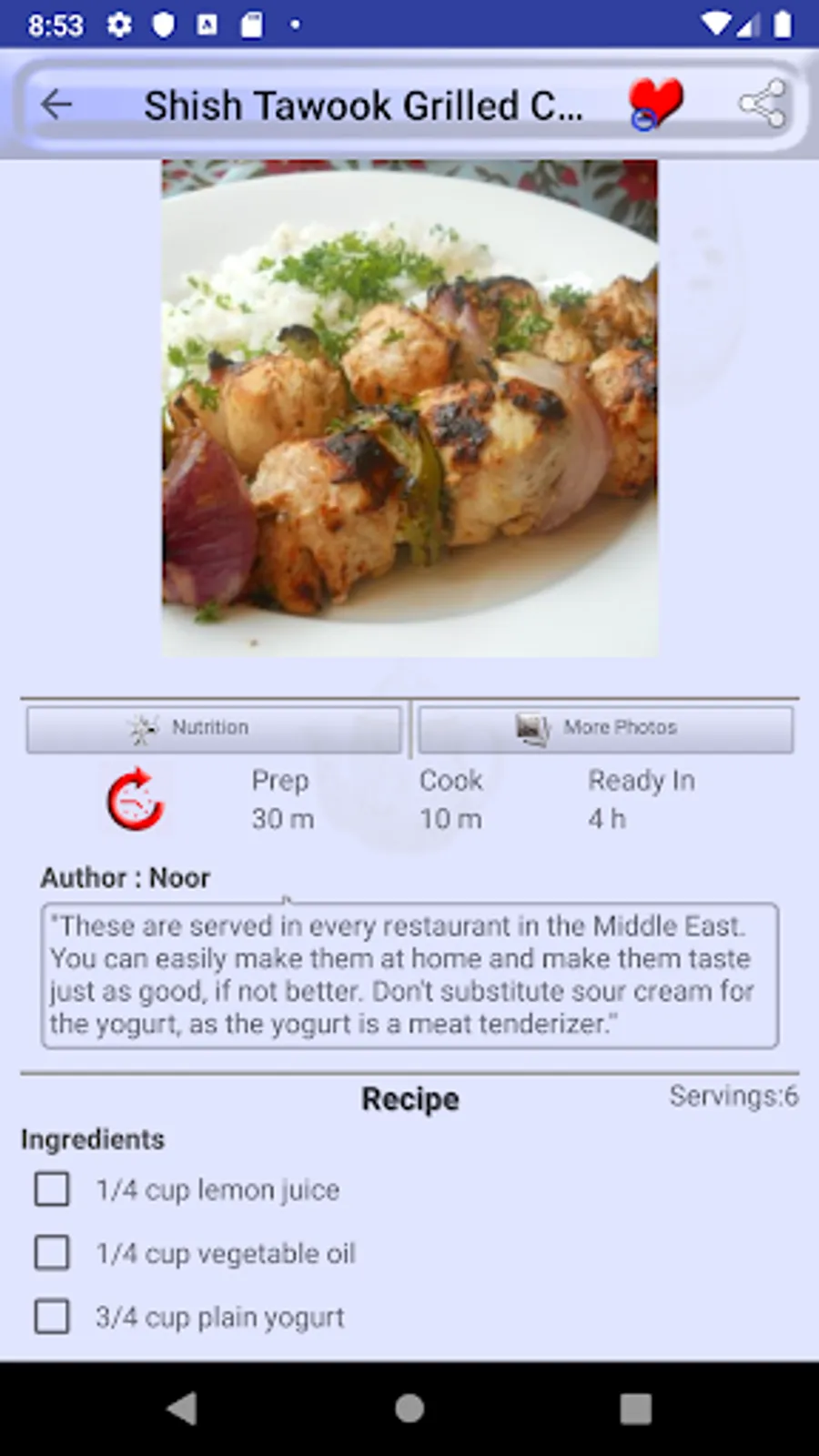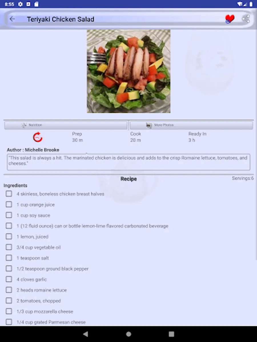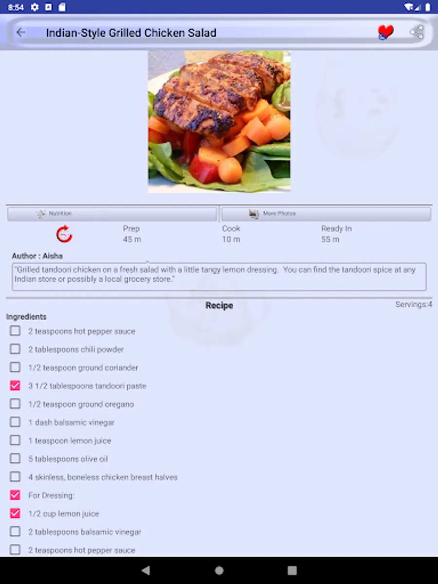 Mark a recipe as favorite recipe and you will not need to search it again in thousands of recipes we provide in Chicken BBQ. All favorite recipes have a dedicated favorite recipes section in menu drawer.