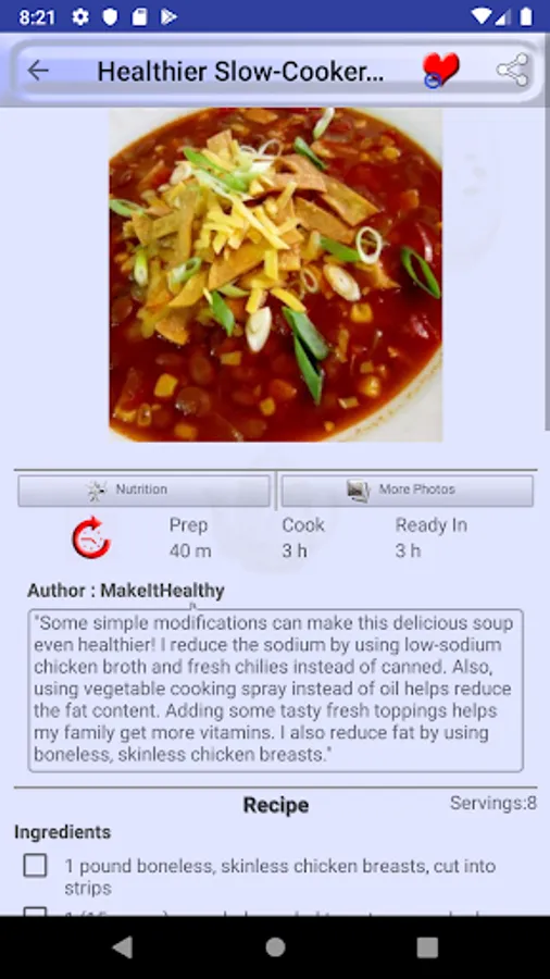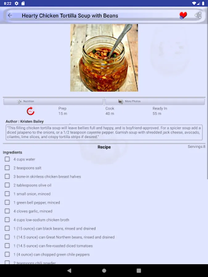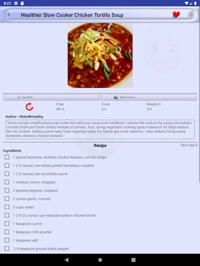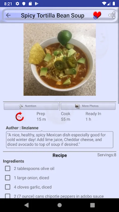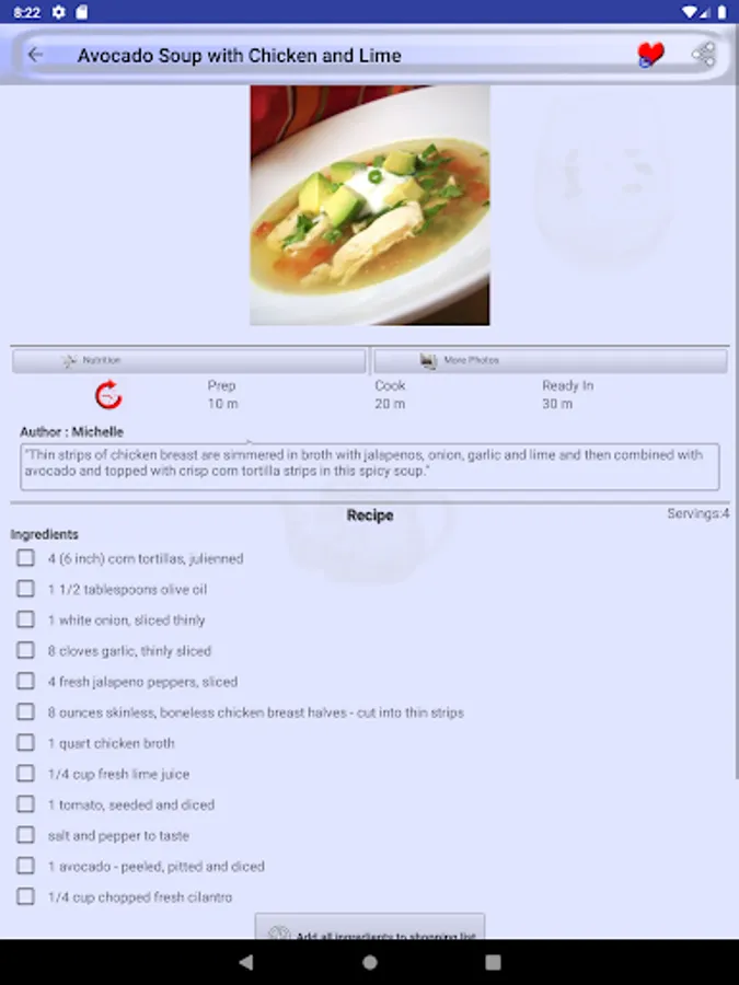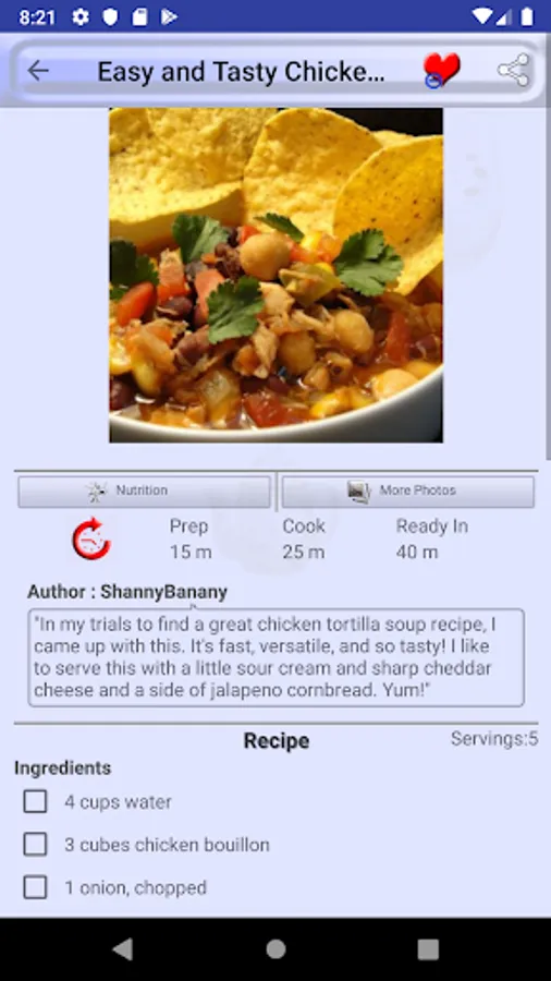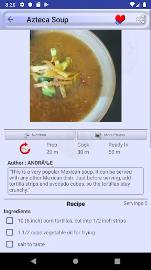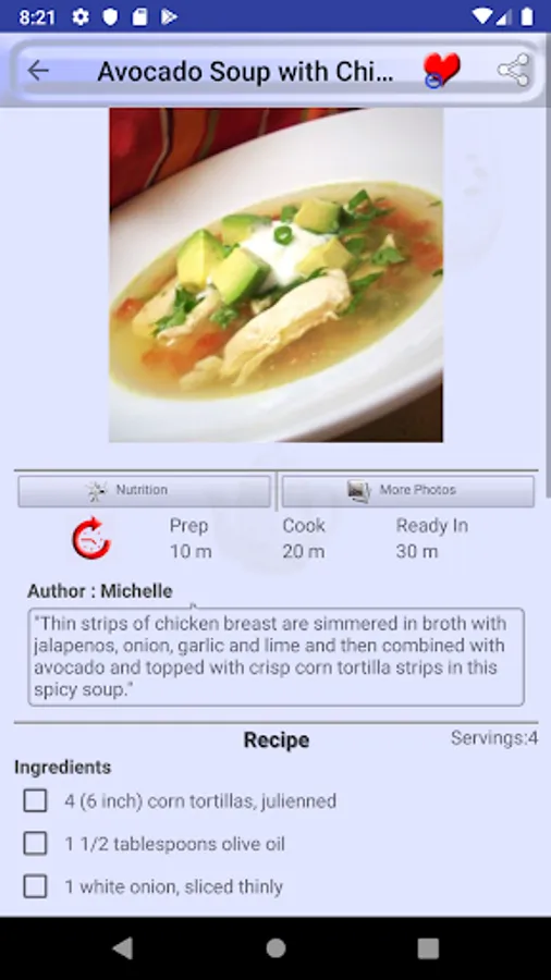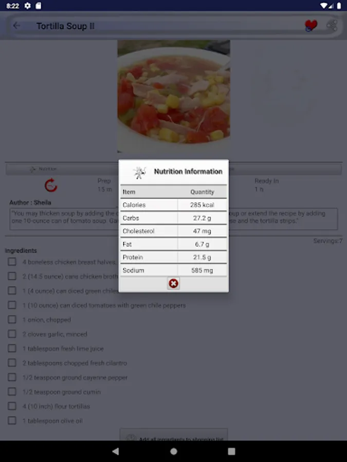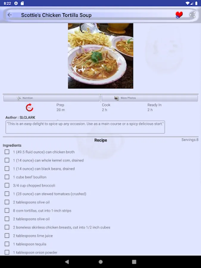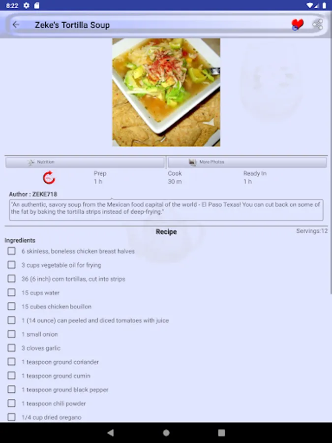 Mark a recipe as favorite recipe and you will not need to search it again in thousands of recipes we provide in Tortilla Soup Recipes. All favorite recipes have a dedicated favorite recipes section in menu drawer.
