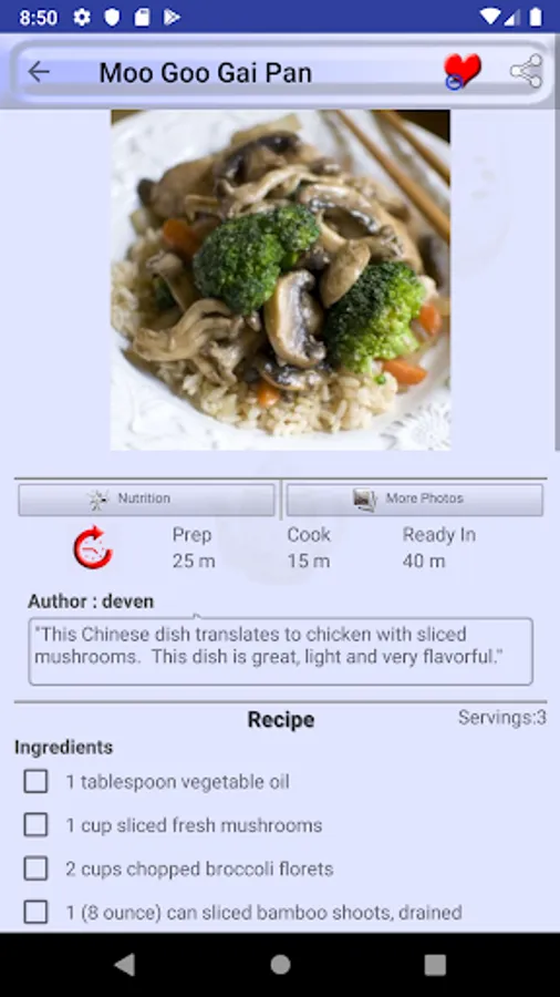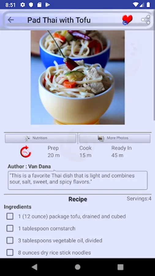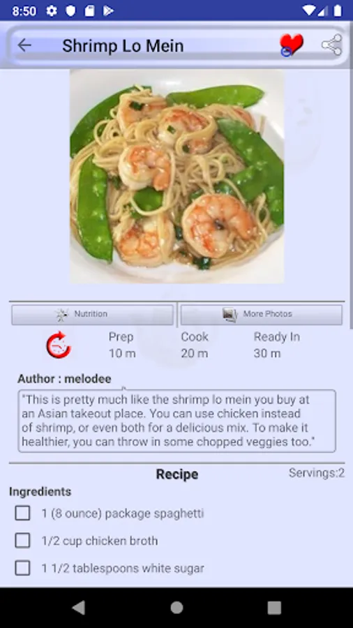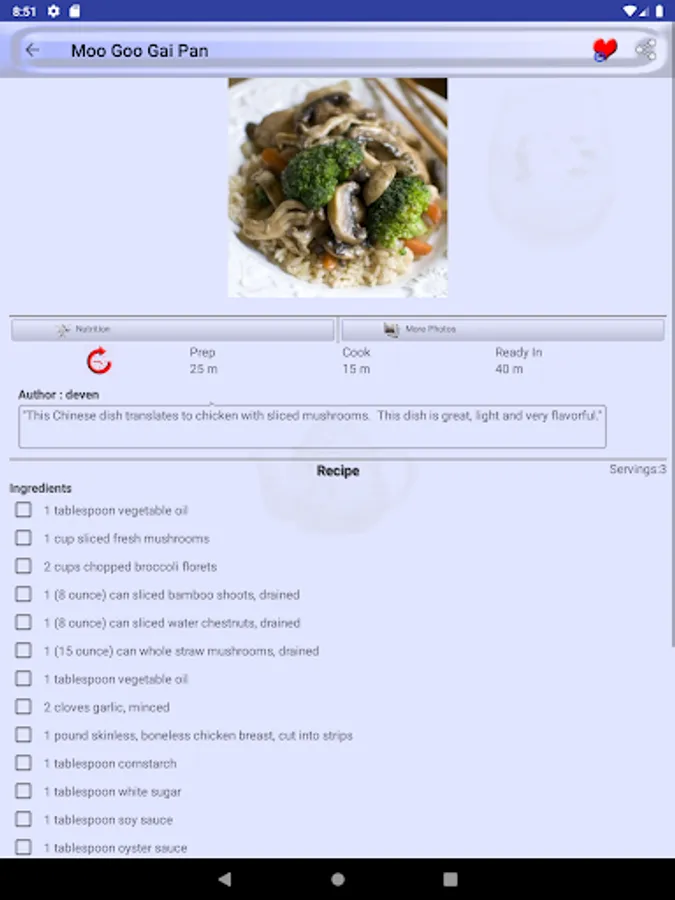 Mark a recipe as favorite recipe and you will not need to search it again in thousands of recipes we provide in Wok Recipes. All favorite recipes have a dedicated favorite recipes section in menu drawer.