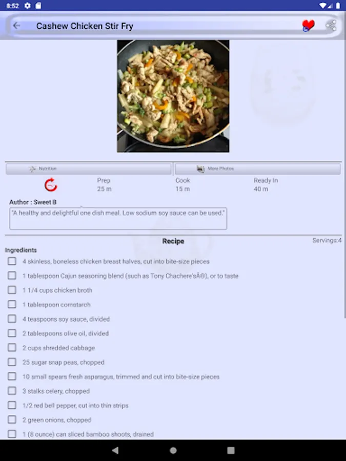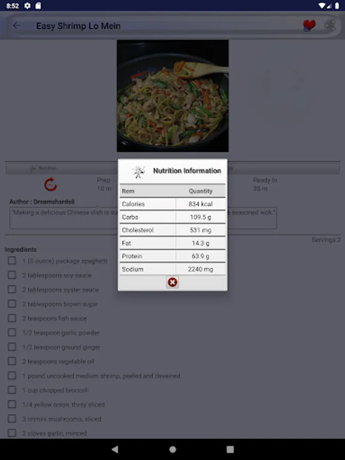 Almost every recipe in Wok Recipes comes built-in with nutrition information, so you don't need to worry about your nutrition plan for your favorite Wok recipe.