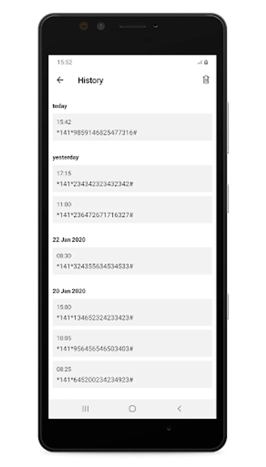 Snappy TopUp will keep record of your scanned recharge codes. It also lets you set up and save your service provider topup keys and use them to complete your voucher pin with only a click