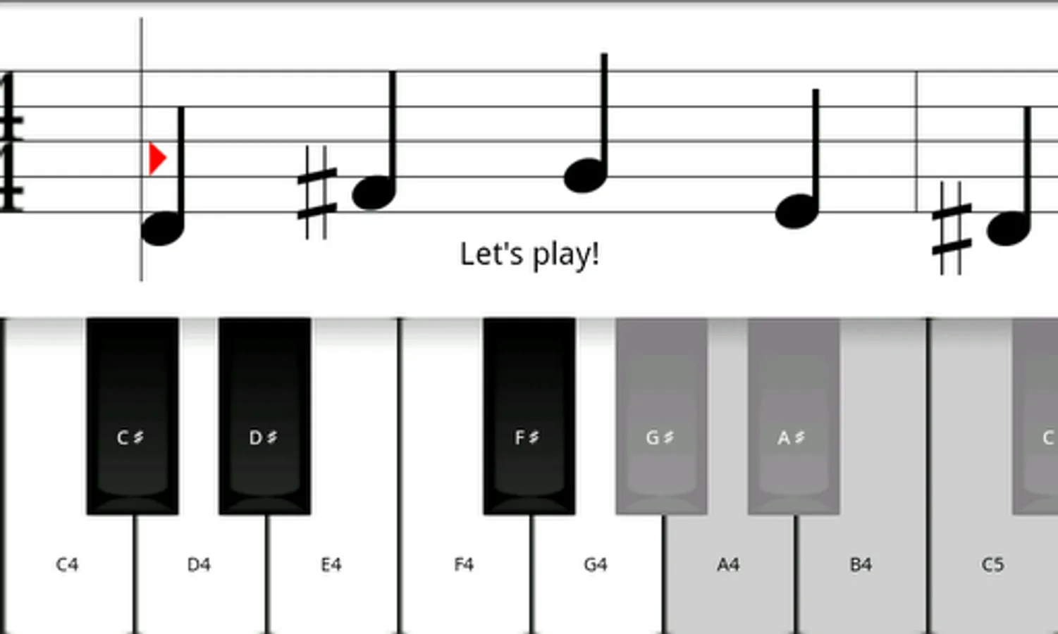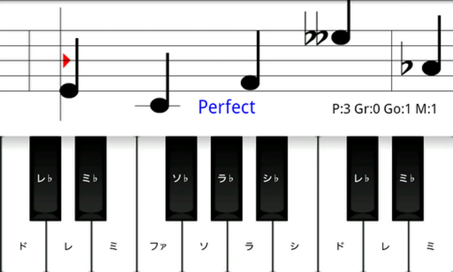 Note stops until you touch right note, so you can play at your pace. This mode is recommended for beginners,too.