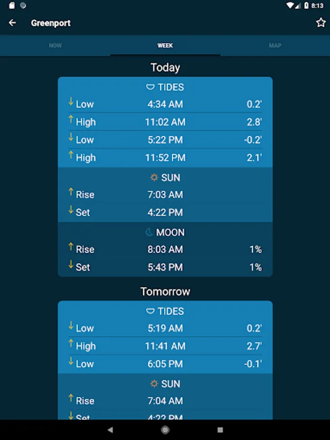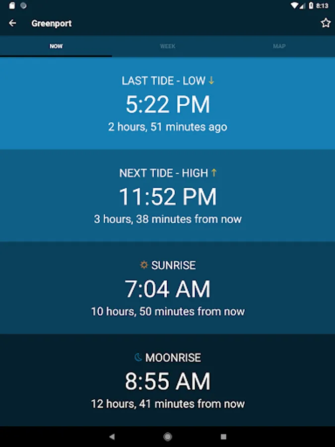 Tides Near Me focuses on nearby tide stations and current tidal conditions. Quickly learn the time of the last and next tide and current, as well as when the sun and moon will rise or set. Fully automated tide tables, charts, and predictions.