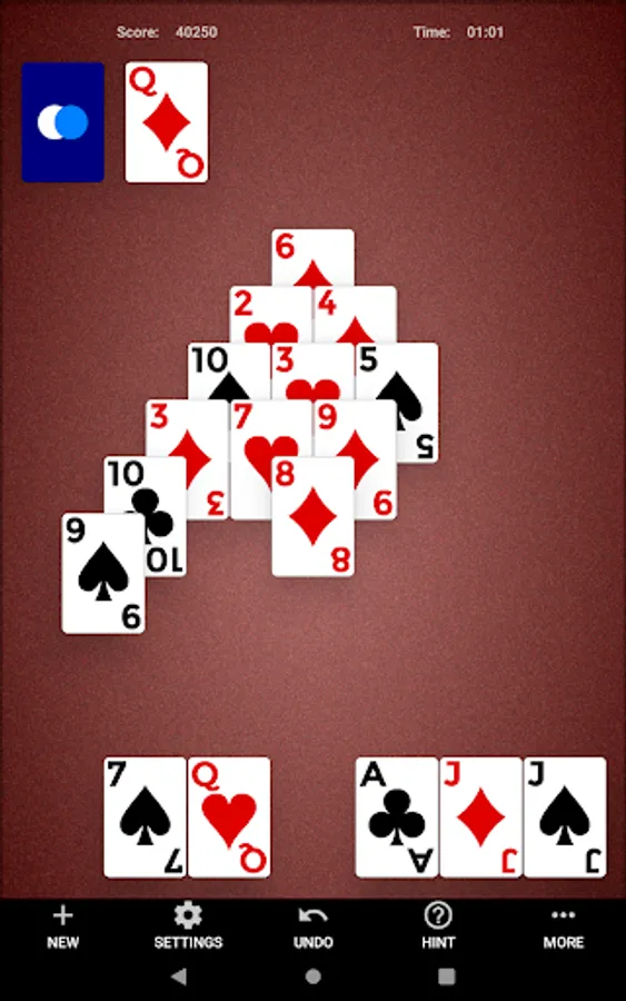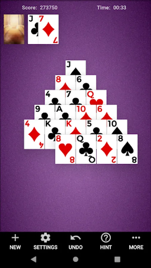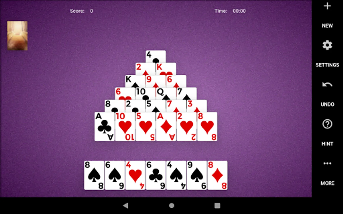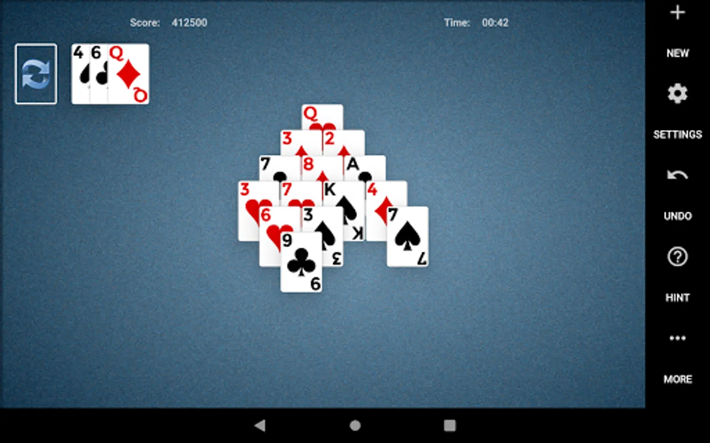 If none of the cards in the pyramid match, then you may draw cards from the card stock. However, you may only draw from the stock a limited number of times. If enabled, you may also take cards from the card reserve. Eliminate all cards and clear the pyramid to win!