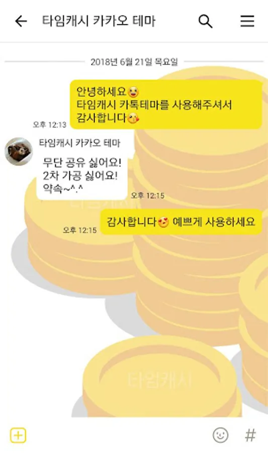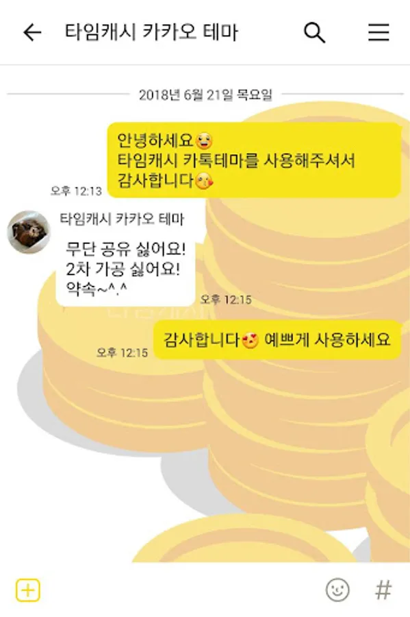 It goes enjoy a pleasant time with KakaoTalk theme cache full of golden cache ~! ^. ^