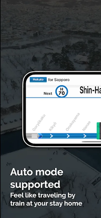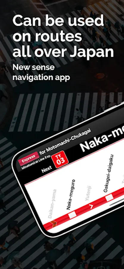 This is a new type of navigation application that reproduces the in-train guidance system of Japanese trains in conjunction with location information.
