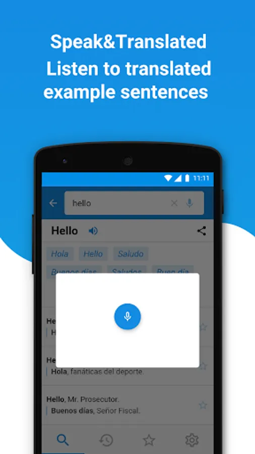 Listen to translated example sentences using text to speech function