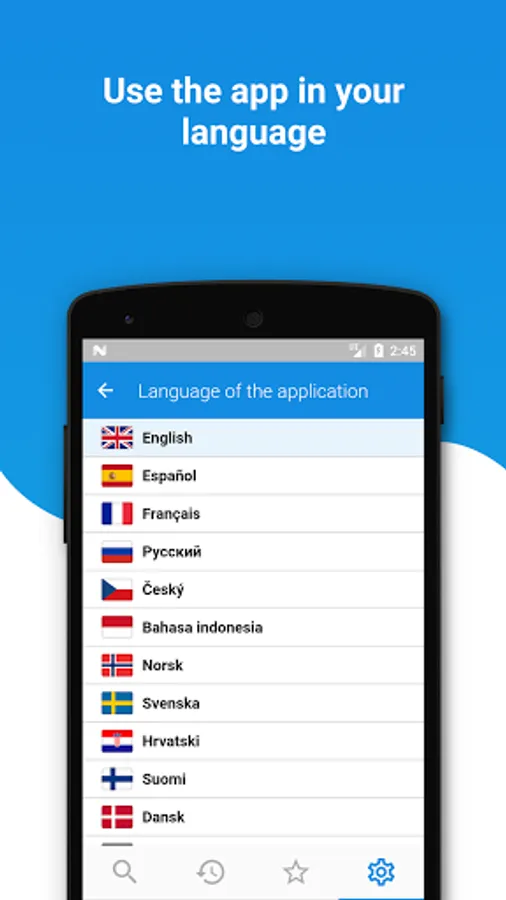 You can use our Context Translation Dictionary app in your language : English , Czech ,Spanish, French,German,Hindi ,Russian (Русский),Indonesian,Portuguese ,Japanese ,Korean ,Turkish ,Thai, Polish, Dutch, Italian, Finnish, Swedish, Croatian, Norwegian, Danish
