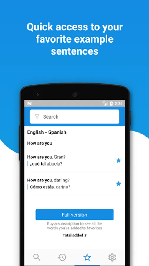 Quick access to your favorite example sentences.