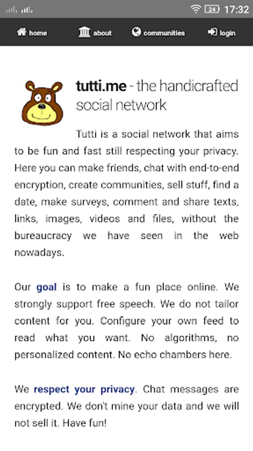 Encrypted instant messaging, no tracking, no algorithms, no tailored content.