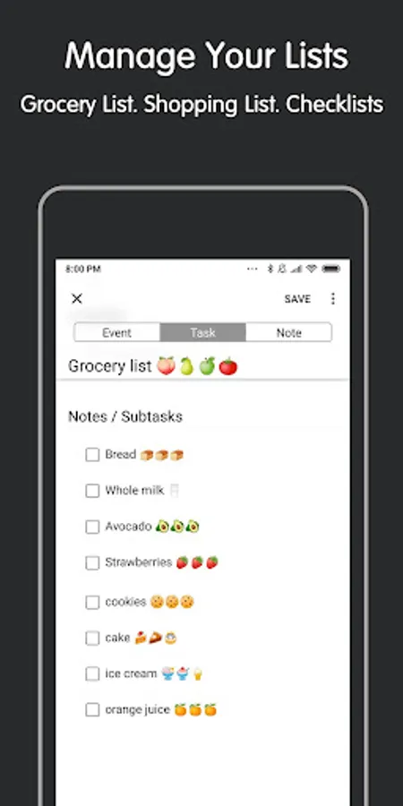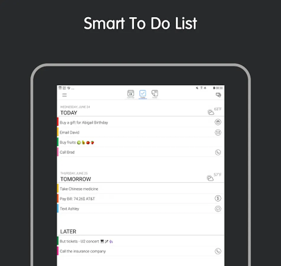 Increase your productivity by working together with shared lists. Organize things at home by sharing the grocery lists or shopping lists with your family. At work: boost your team’s productivity by sharing the team’s tasks and action items. You can also share events, reminders and notes with your family and friends with real time sync between all participants.