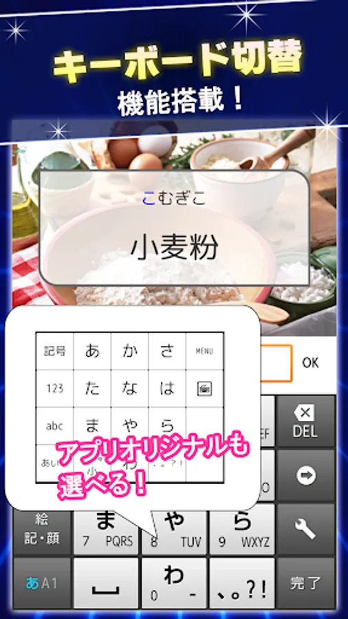 -Simple key layout allows crisp and flick input! [App original keyboard]