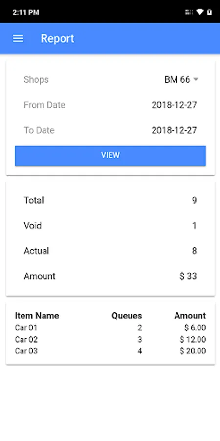This application can be used to print queue number with item price (mostly for car cleaning service). The queue number will be reset by day. By the end of the day user will be able to view summary report.