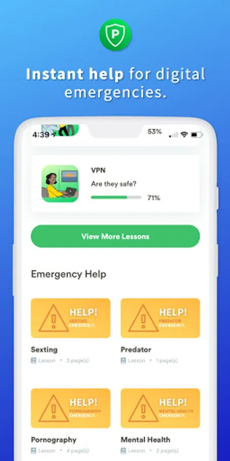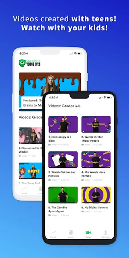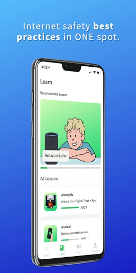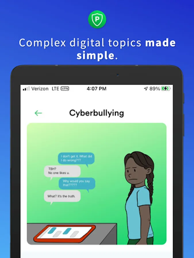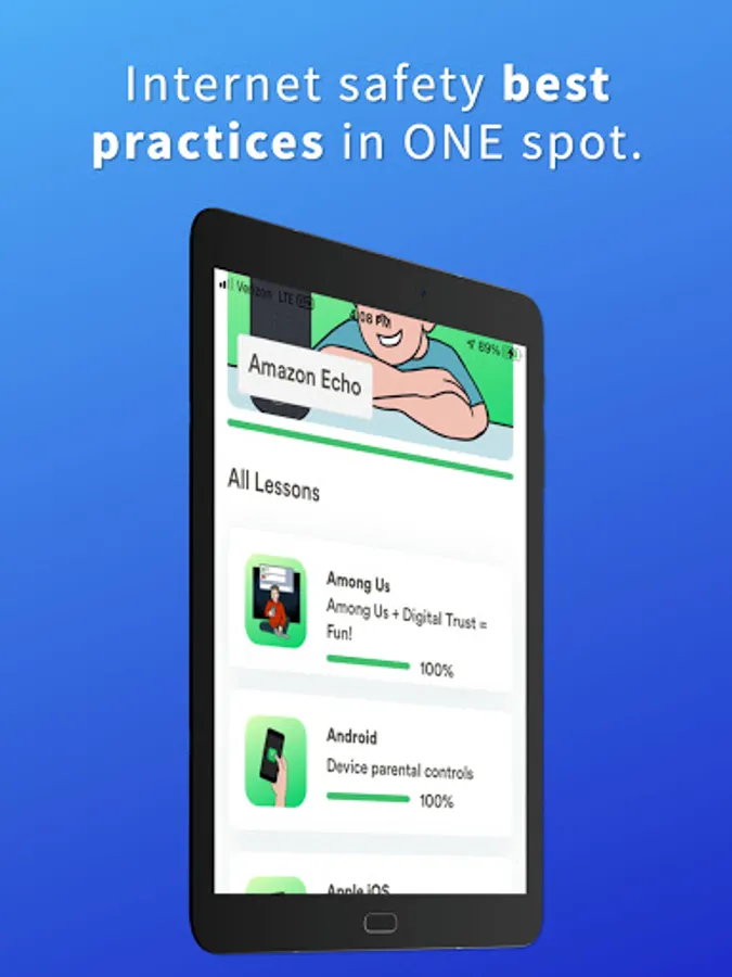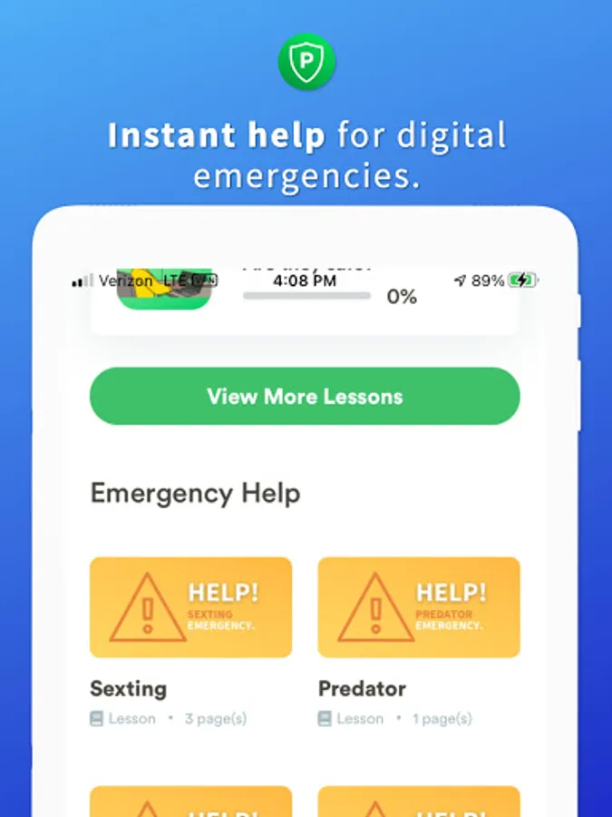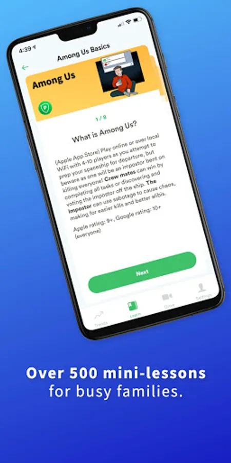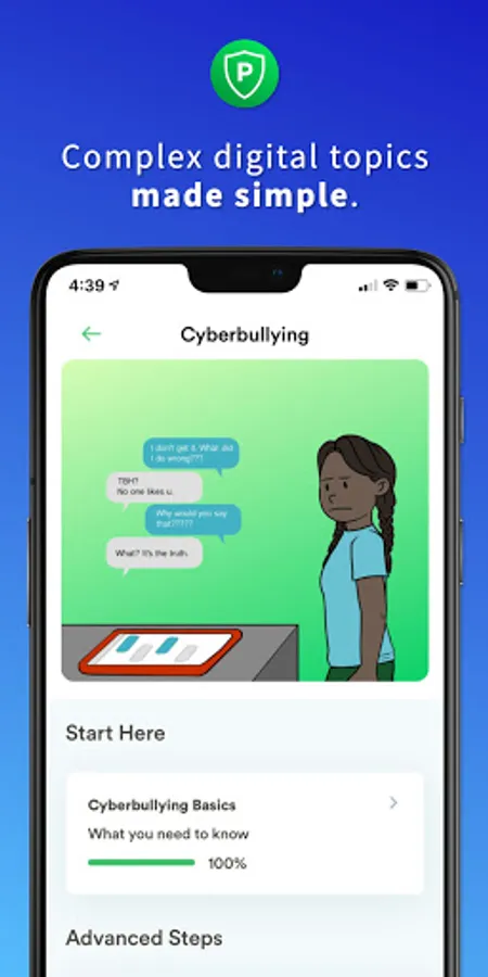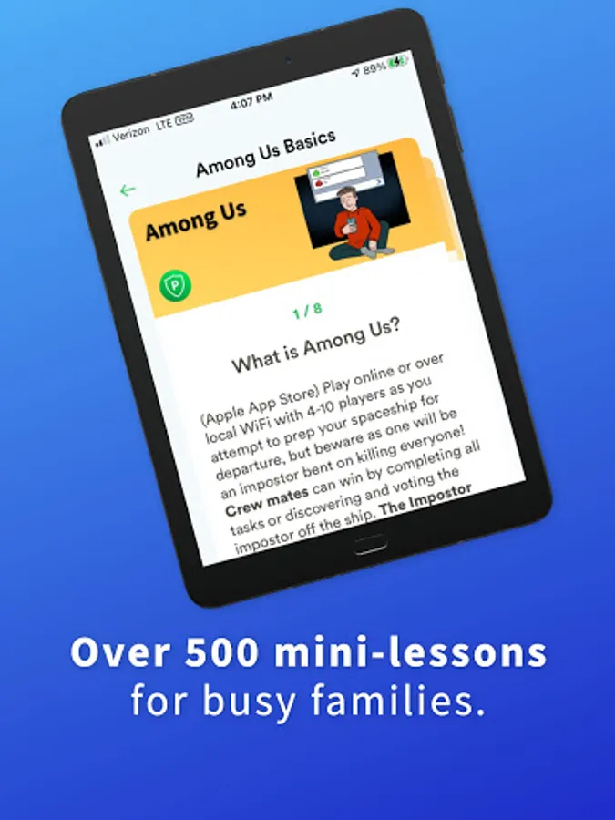 Swipe through the “Basics” of one lesson to get an overview. Feeling confident? Move on to "Advanced Steps." Have 5 minutes with your child? Then go to the new GROW tab and watch a video about online predators to start an awesome conversation.