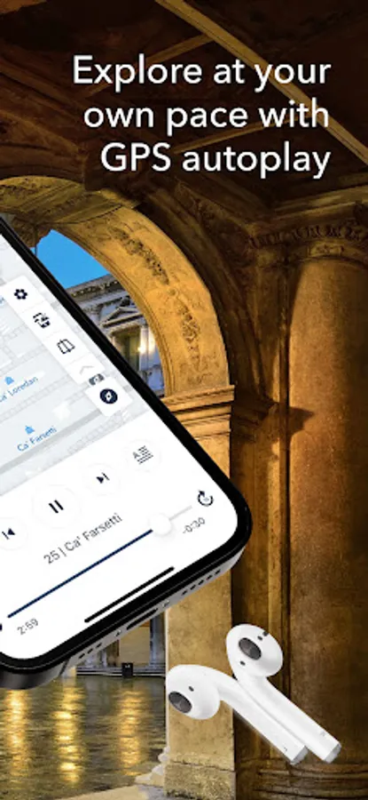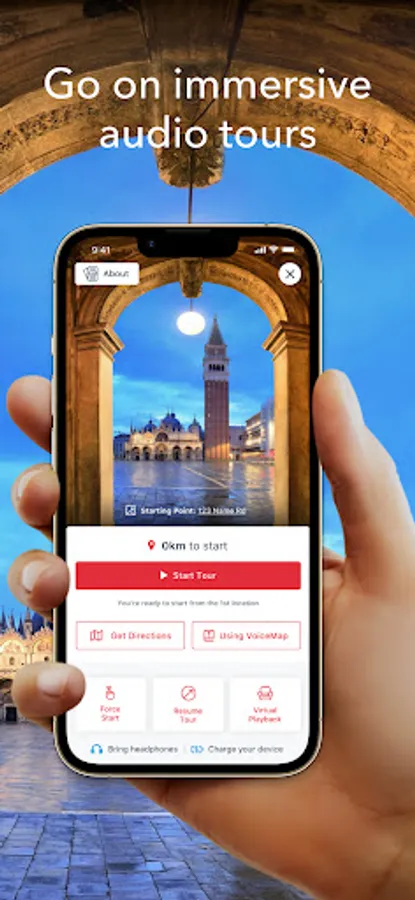 • Explore at your own pace. Start and stop tours whenever you like, then use the resume option to pick up exactly where you left off.