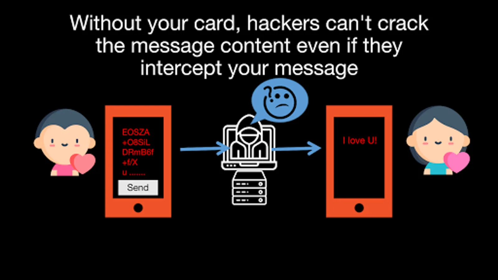 To use M.E., you need to create a card first. A card is also an encrypted base64 string, which contains your basic infomation and RSA keys. You can send this card to your friends. They copy the card to clipboard and switch to M.E., the card will be imported automatically. Only the friends who have your card can decode your message.