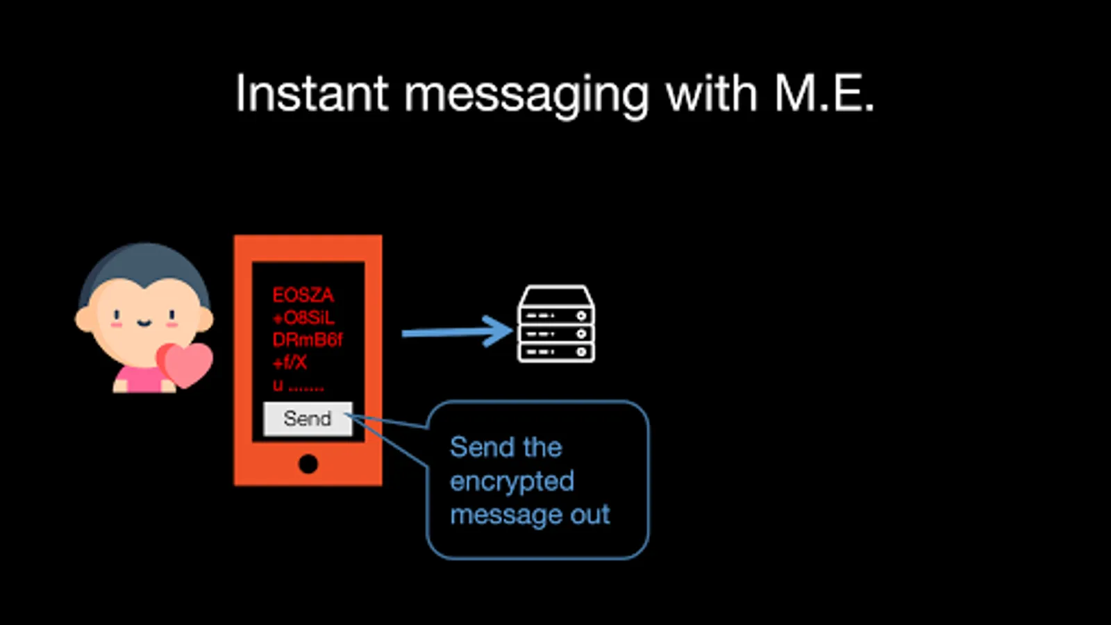 M.E. encrypts a message into a base64 string by a customized RSA algorithm. You can send the encrypted string to your friend through any communication software (im/mail/cloud file/etc.)
