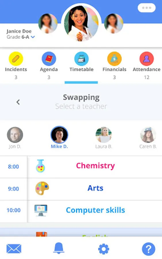 * Teachers enter grades, assignments, and remarks. They can also check their schedule and take attendance.