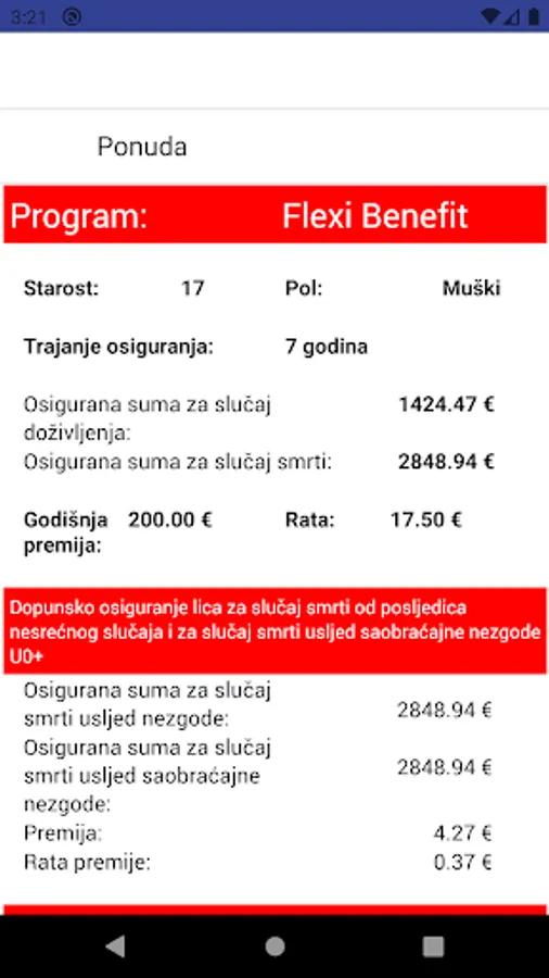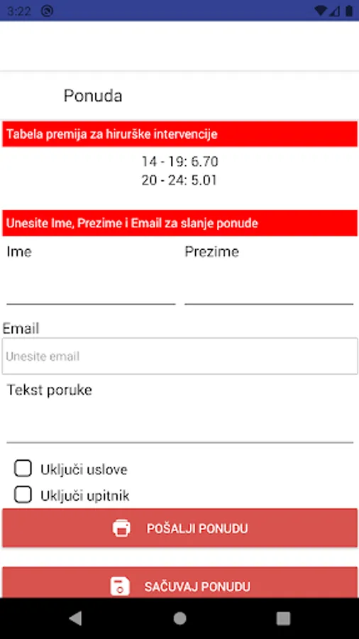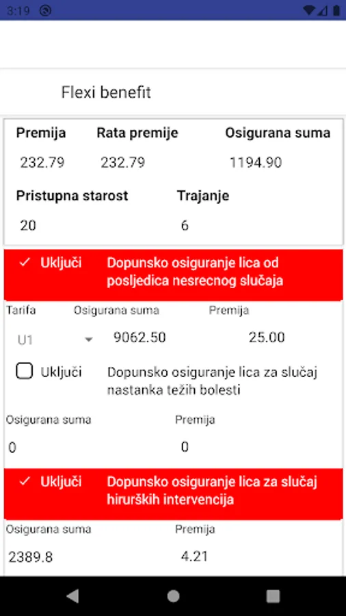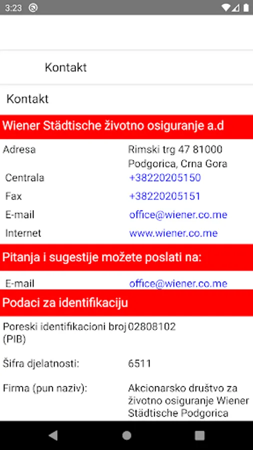 Interna aplikacija za obračun tarifa osiguranja Wiener Crna Gora