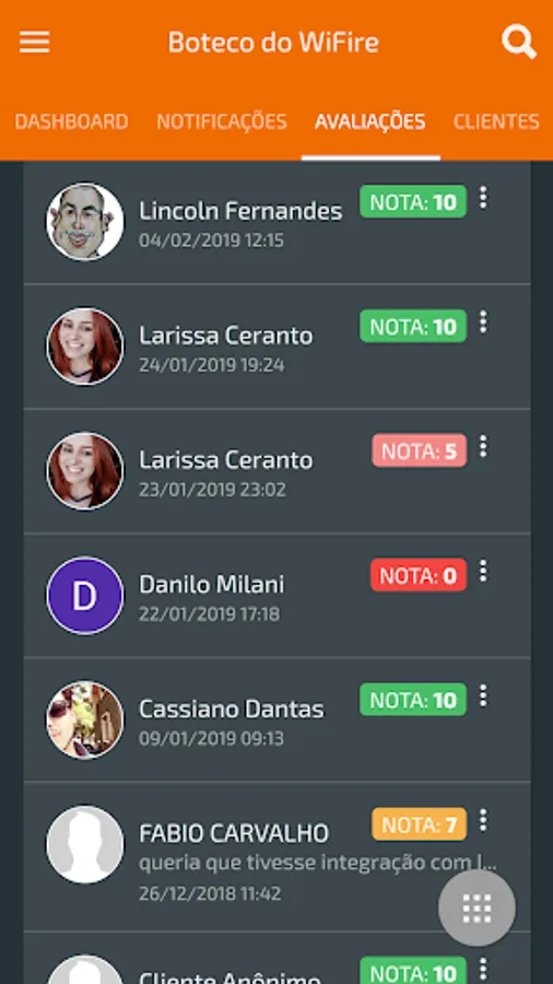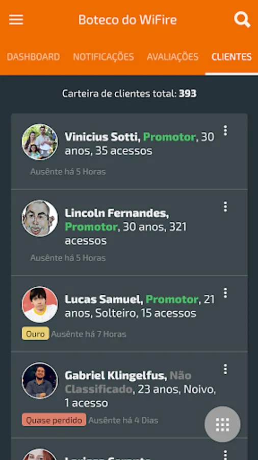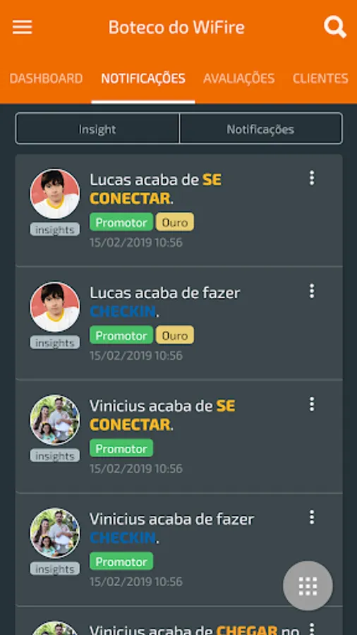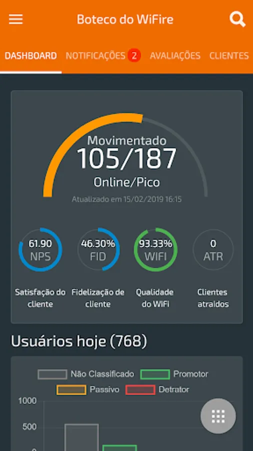 With the App Admin WiFire the owner can follow the evaluations, access, results and insights of their establishment, in addition to being notified of imported events such as: