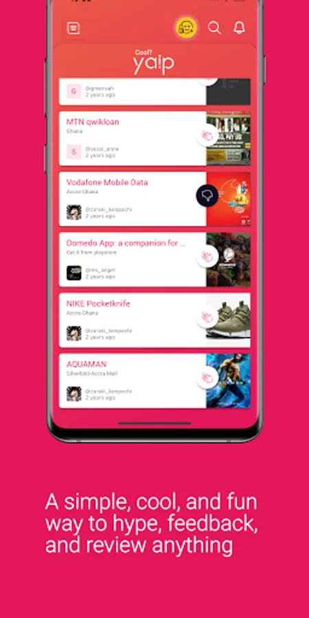 Yaip is a simple, cool, and fun way to hype, feedback, and review anything by sharing your firsthand personal experiences with rich detailed description or narrative, and helpful tips.