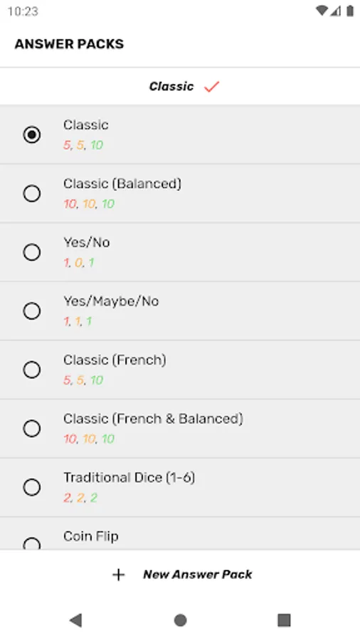 You can change your answer pack to have a more customized Magic 8 Ball experience. You can also create your own personal answer packs.