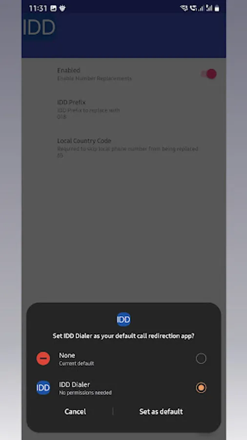 This is a simple app to change outgoing phone number to prefix IDD providers prefix. 🤑