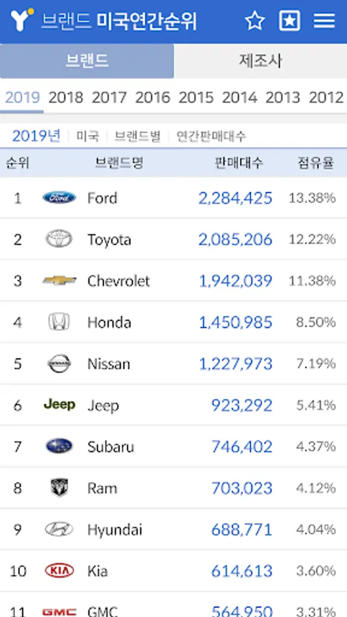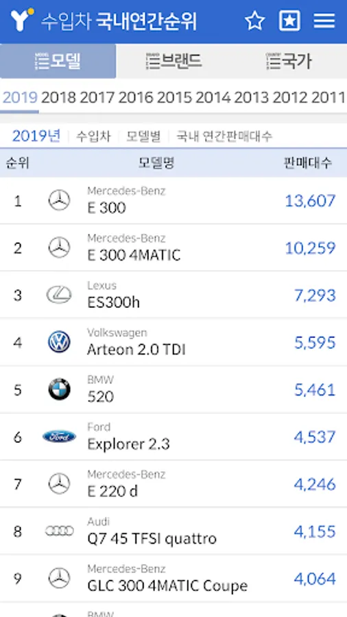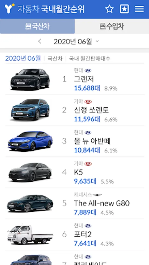 You can check the ranking of the most sold domestic cars in Korea by year.