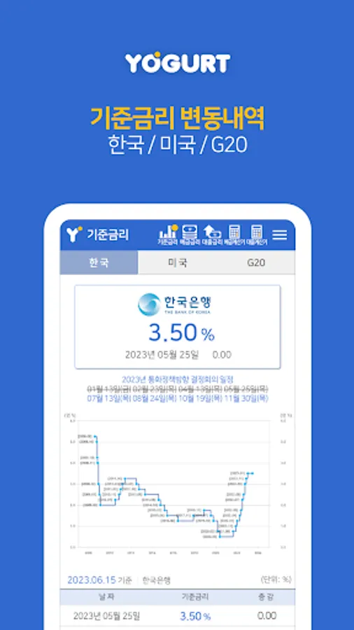 You can compare the standard interest rates of Korea/USA/G20 countries.
