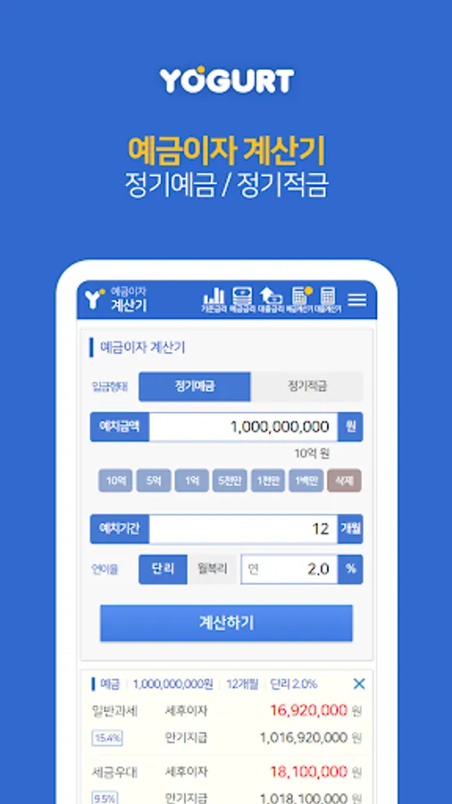 You can enter the amount and duration to calculate the interest rate of your deposit.