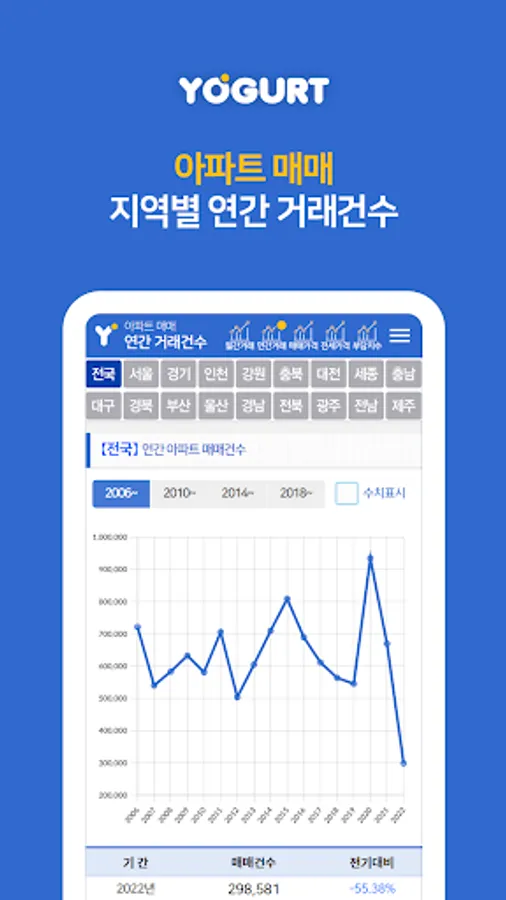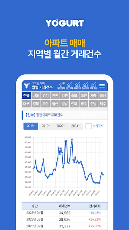 It shows the number of monthly apartment sales transactions by region in a graph.