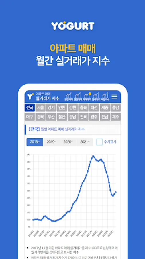 It shows the monthly actual transaction price index of apartment sales by region in a graph.