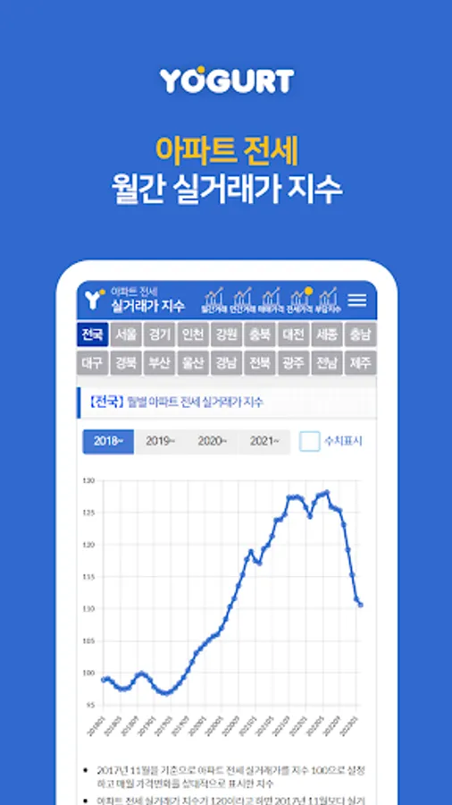 It shows the monthly actual transaction price index for apartment charter by region in a graph.