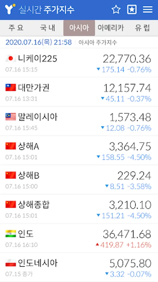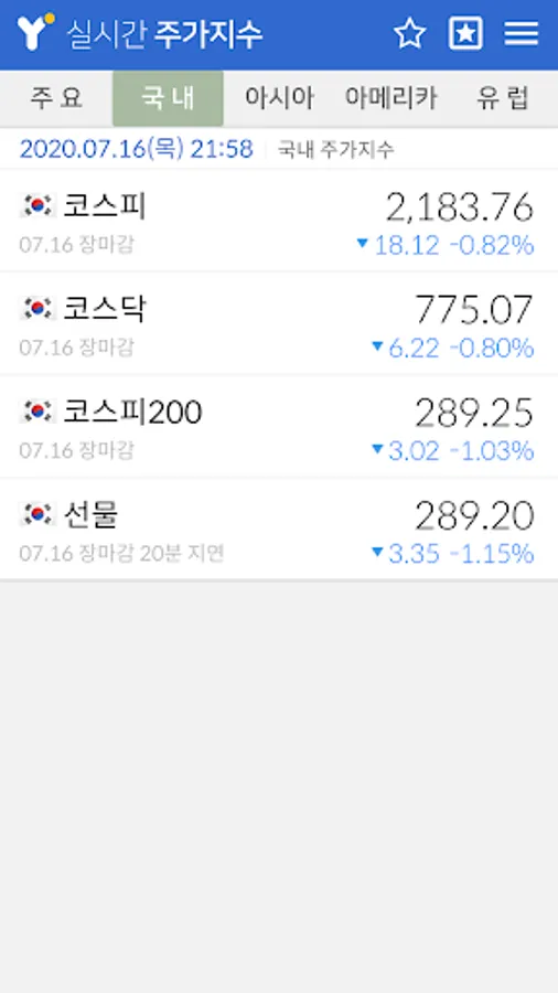 You can search domestic stock indices such as KOSPI and KOSDAQ in real time.