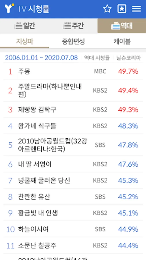 You can check the weekly viewership ranking from last Monday to Sunday.