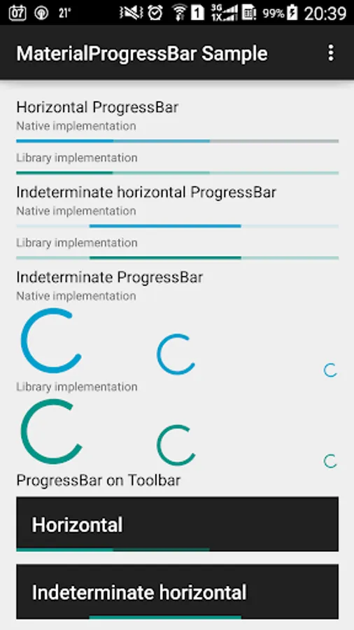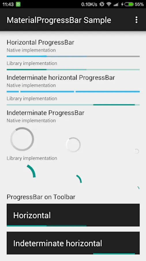 Material Design ProgressBar with consistent appearance on Android 4.0+.