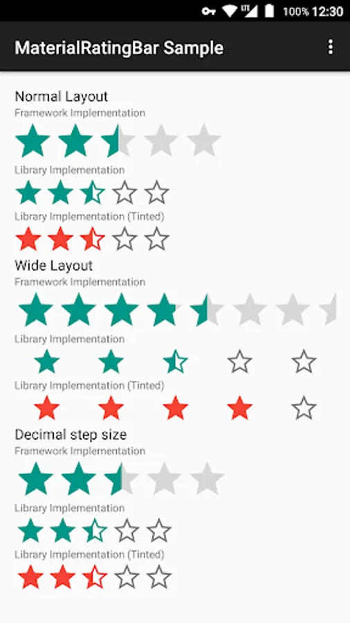 - Able to display ratings such as 4.3 correctly, which will be filled to 4.5 by framework's incorrect implementation.