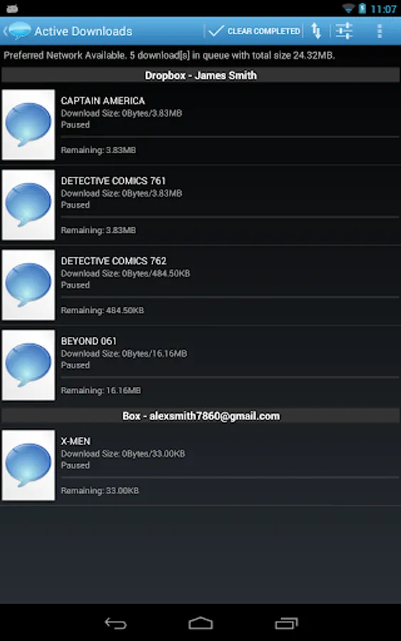 - Single button sync and download of your comics from your SMB Shares, OneDrive™, Dropbox™, Google Drive™, Box™ accounts.