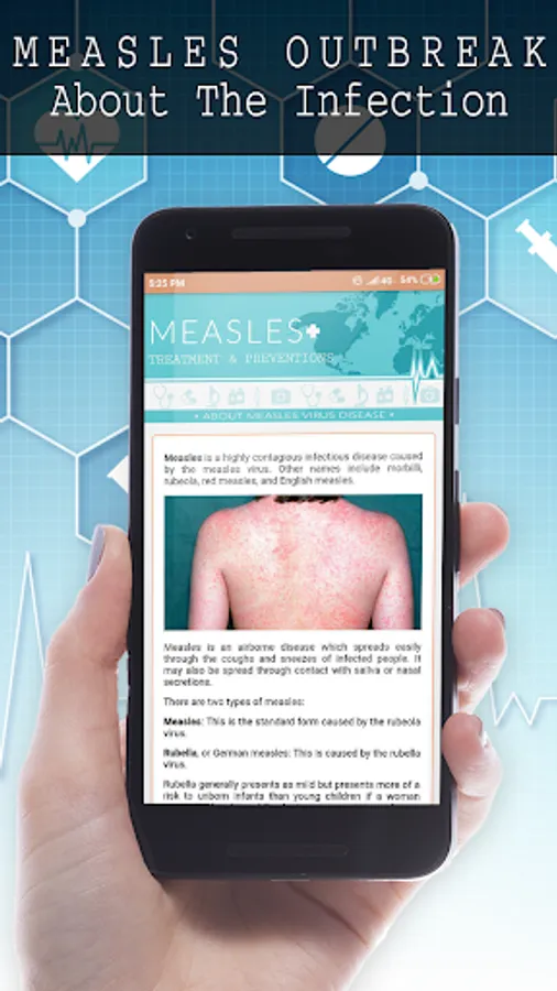 Measles Virus Infection Treatment & Prevention android mobile app provides full step by step detail explanation on how to treat and prevent measles virus infection disease from occurring.