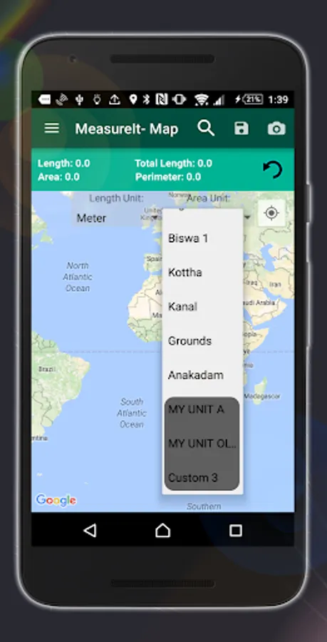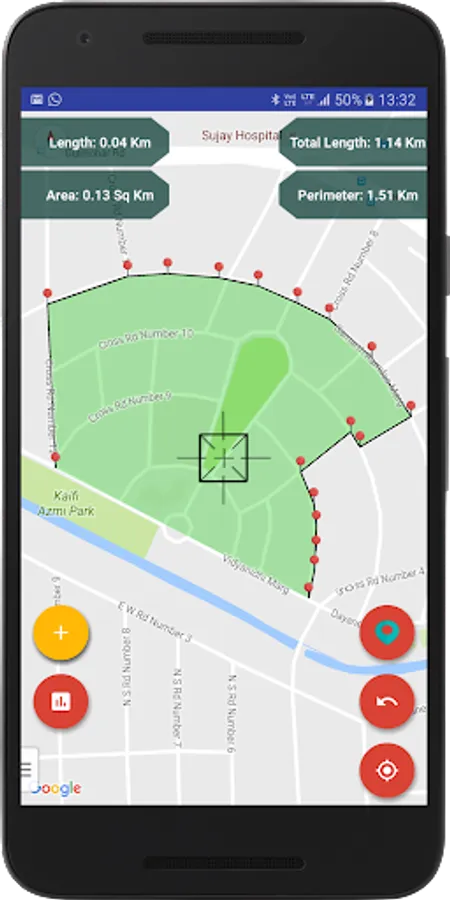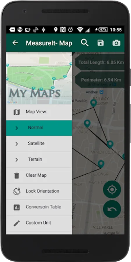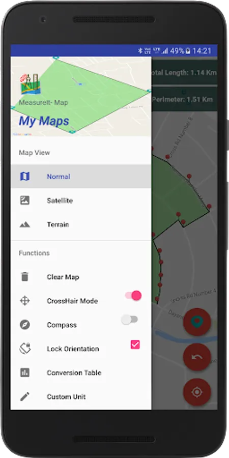 MeasureIt- Map provides user with an easy way to measure distance, area and perimeter on Google maps. App provides user with many features such as wide range of units to measure and an option to capture your markings and area readings as a JPG image file for sharing and further reference. Newly added feature 'CrossHair' helps in accurate marking. App also includes mini compass for direction reference.
