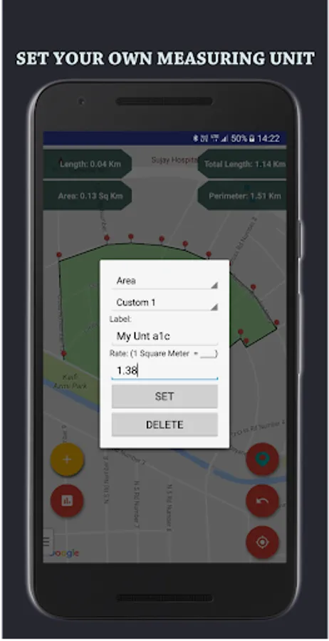 ' • Set your own unit for measurement (Up-to 3 -- both length and area) (Only in PRO version)