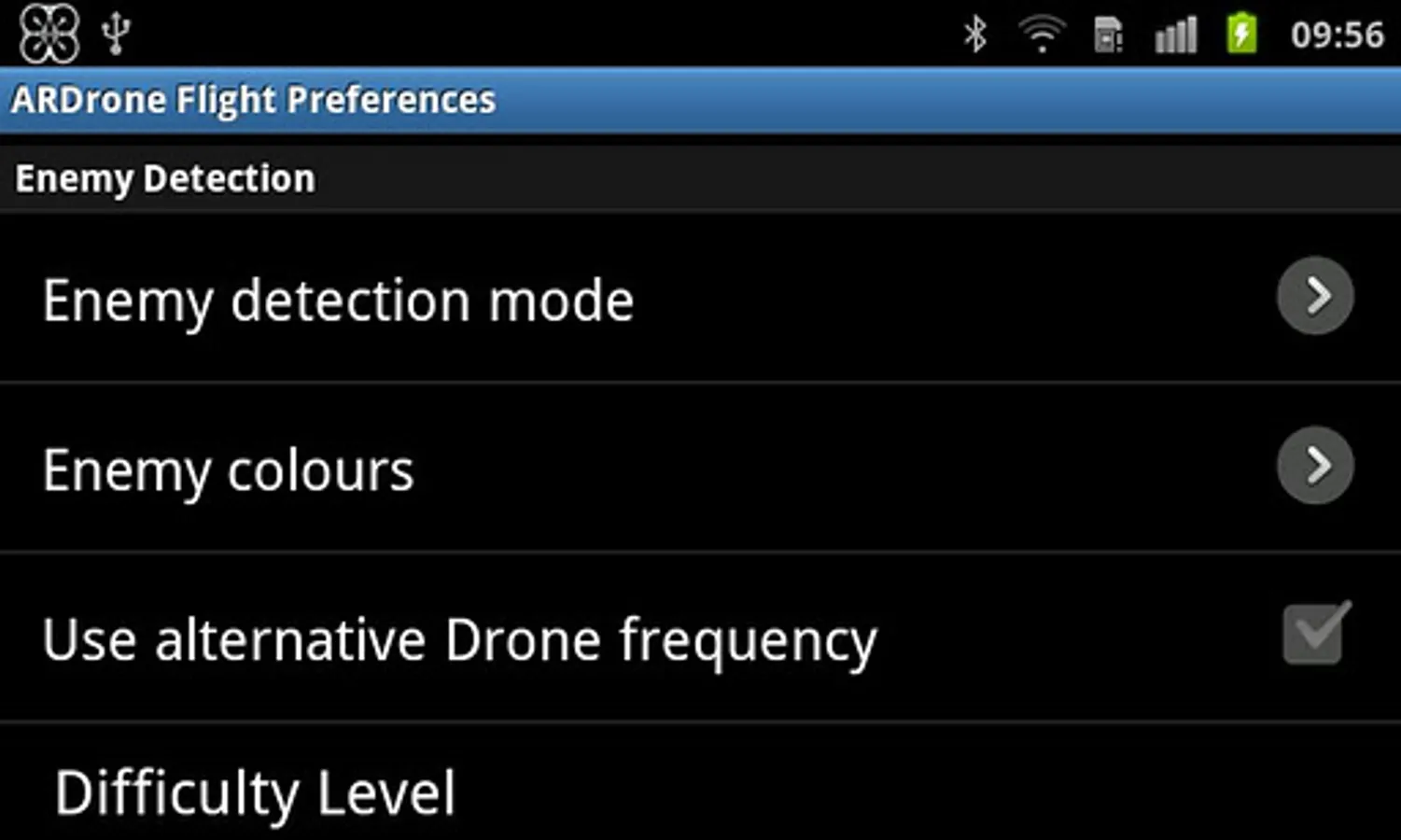 With ARDrone Combat installed, configure the enemy detection colours, mode and difficulty level in ARDrone Flight.